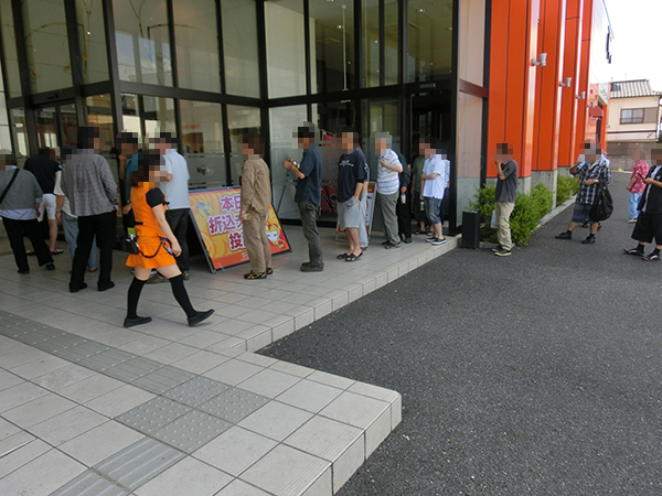 開店前から約90名のプレイヤーが集合。スタッフの元気な挨拶に迎えられての入店となった。