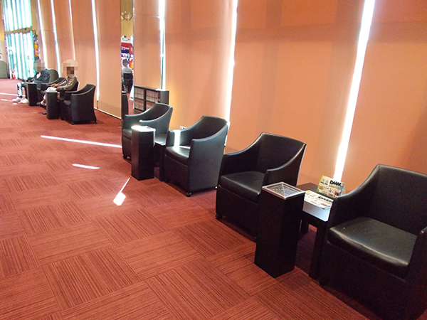 たくさんの椅子が並べてあるレストスペースには、漫画本や灰皿が用意されていて、ゆったりとした時間を過ごすことができる。