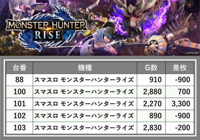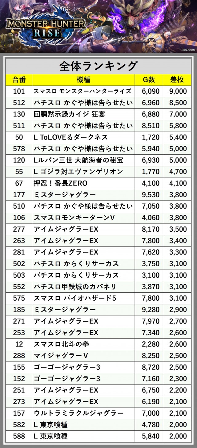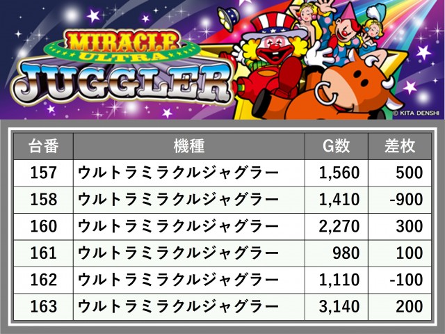 厳選された取材対象機種をはじめ、その他スロット全体から好記録が飛び出した!プレイヤーが楽しんだ1日を下記データにて振り返ってみて欲しい。