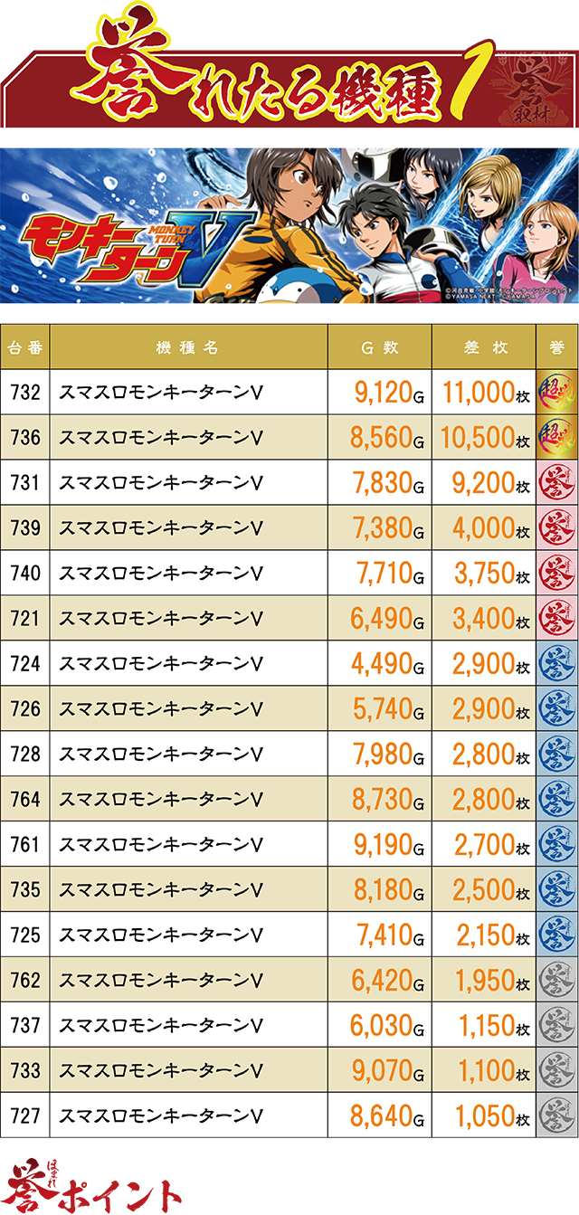25台設置中17台が誉レコード(=1,000枚以上)となり、かなりの盛り上がりを見せてくれた『スマスロモンキーターンV』。この結果を見て、誰もが『モンキー』には相当数のチャンスがあったと思ったことだろう。その考えは正しい!