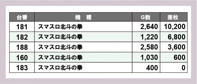 ※差枚数順に掲載しています