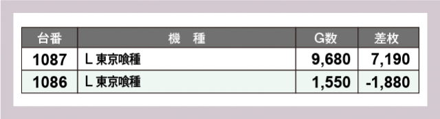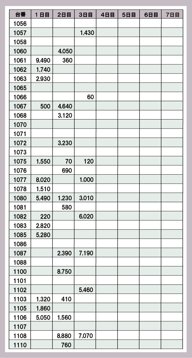 ※差枚数がプラスの台のみ表記しております