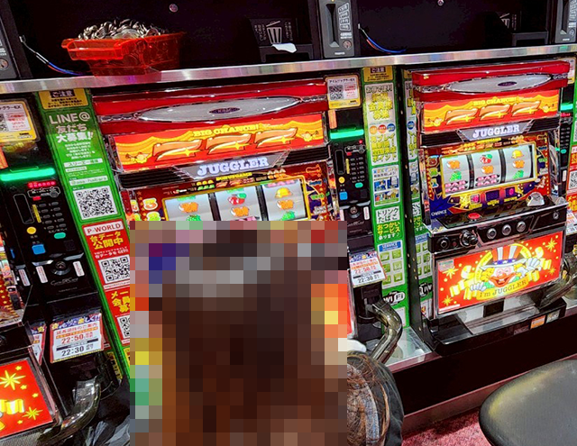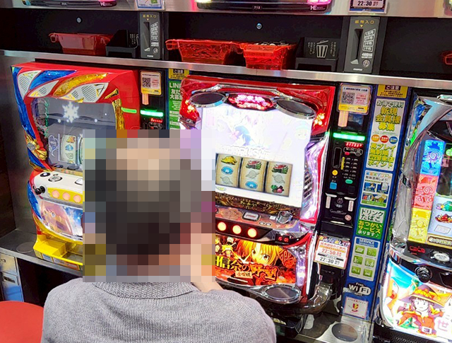 「アイムジャグラーEX」にも持ち玉を使い、うれしそうに遊技をおこなっている姿があった。