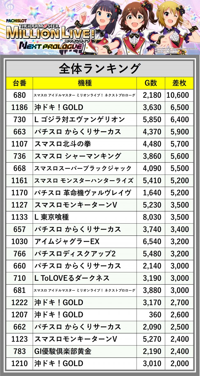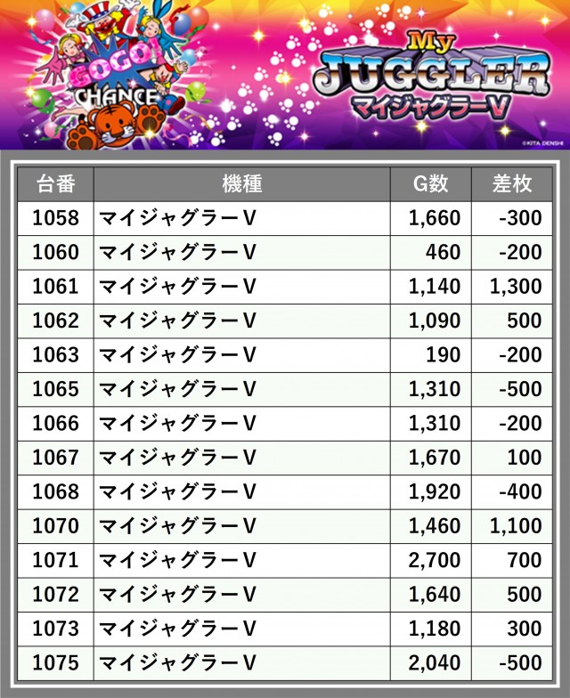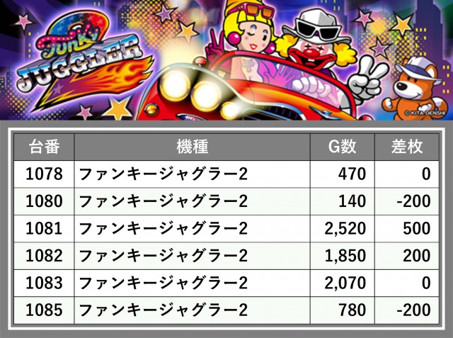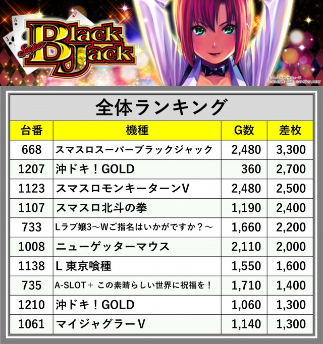 厳選された取材対象機種をはじめ、その他スロット全体から好記録が飛び出した!プレイヤーが楽しんだ1日を下記データにて振り返ってみて欲しい。