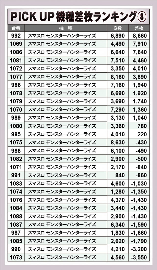 優秀機種として名を連ねた8機種はいずれも存在感を発揮し、盛り上がりの中心地として活躍していた印象だ。万枚OVERを達成した『パチスロ かぐや様は告らせたい』『スマスロ ゴッドイーター リザレクション』はもちろん、『L 東京喰種』や『スマスロ モンスターハンターライズ』といった機種も大きな熱を放ち、ファンを歓喜させていた存在である。また『アイムジャグラーEX』も回転数と差枚数が比例する展開を披露し、島一体で笑顔が咲き乱れていたのも見逃せない。