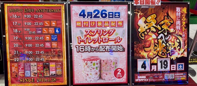 当リサーチの主旨は「週のラストを飾る土日営業の真実」を探ることにある。過去2回はパチスロ・パチンコどちらもハイスコアが見受けられ、同店の高い実力が見て取れた。3度目も同じように実績を重ねたいものだが、果たしてどうなるか。
