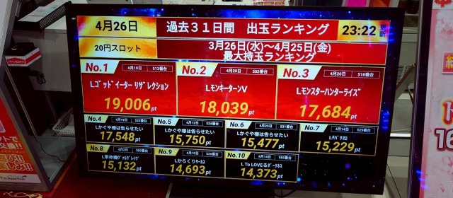 『ぱちんこ シン・エヴァンゲリオン Type レイ』『P大海物語5』『e牙狼神速神撃3000LT』といった機種に多くのファンが群がり、前2つには大当り回数30に近い台も認められた。
