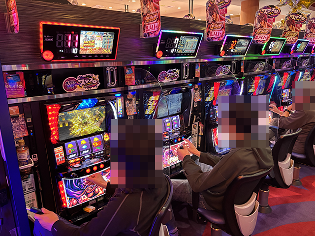 パチスロコーナーをまわっていると、スマスロや沖スロなど、あちこちから活気が感じられた。