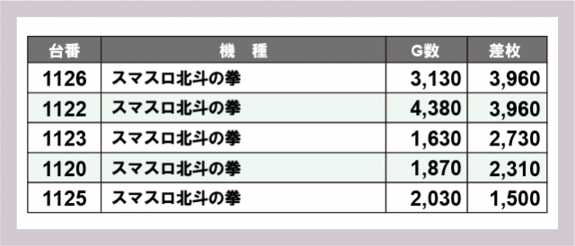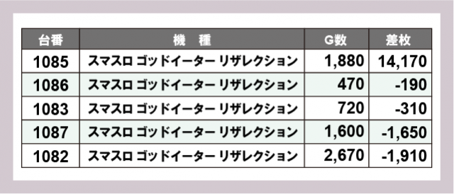 ※差枚数順に掲載しています