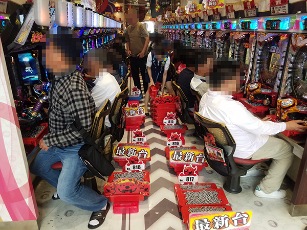 20円パチスロにおいては、「押忍!番長3」といったAT・ART機をはじめ、ジャグラーシリーズなどのボーナスタイプも支持が厚く、様々な機種が満席となっていた。