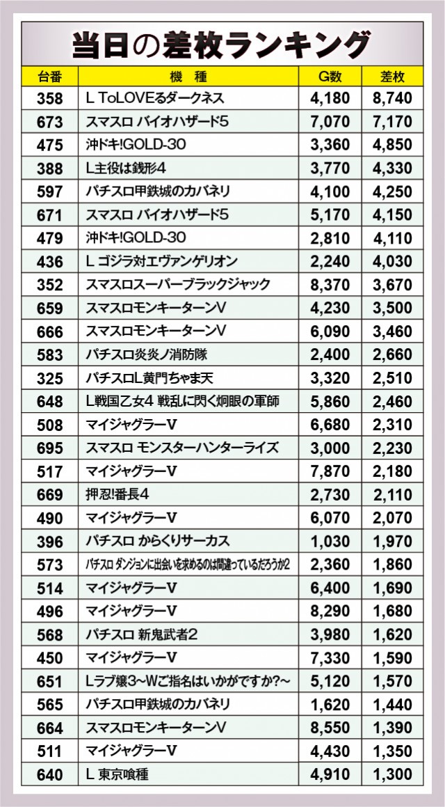 ※差枚数順に掲載しています。