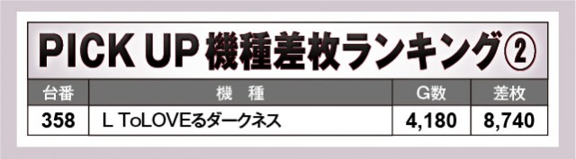 上表の優秀機種たちはいずれもポテンシャルを秘めており、しっかりと熱気を放ってファンを笑顔にしていたのが何よりも印象的である。『L ToLOVEるダークネス』8,000枚OVER、『スマスロ バイオハザード5』7,000枚OVERという数字は圧巻で、遊技していたファンは思わず笑みをこぼしたのではないだろうか。もちろん『スマスロスーパーブラックジャック』『スマスロモンキーターンV』も奮起し、『沖ドキ!GOLD-30』はコンスタントにハイビスカスが輝き、『マイジャグラーⅤ』も回転数と差枚数が比例する展開を披露した。