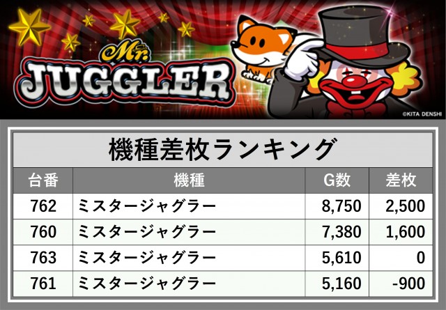 厳選された取材対象機種をはじめ、その他スロット全体から好記録が飛び出した!プレイヤーが楽しんだ1日を下記データにて振り返ってみて欲しい。