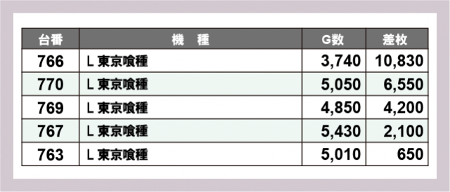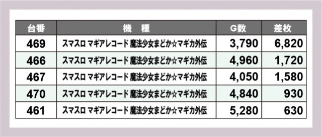※差枚数順に掲載しています