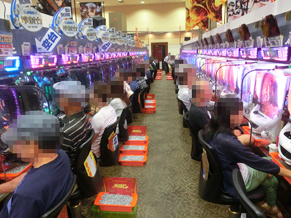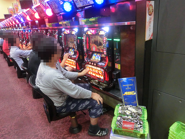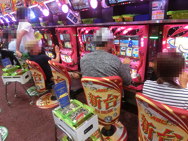 取材日の店内では、パチンコ・パチスロ共に様々な機種で遊技を楽しむプレイヤーが見られた。
