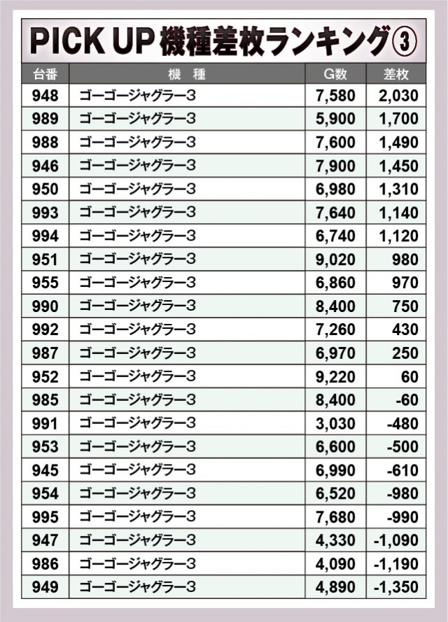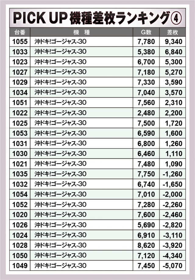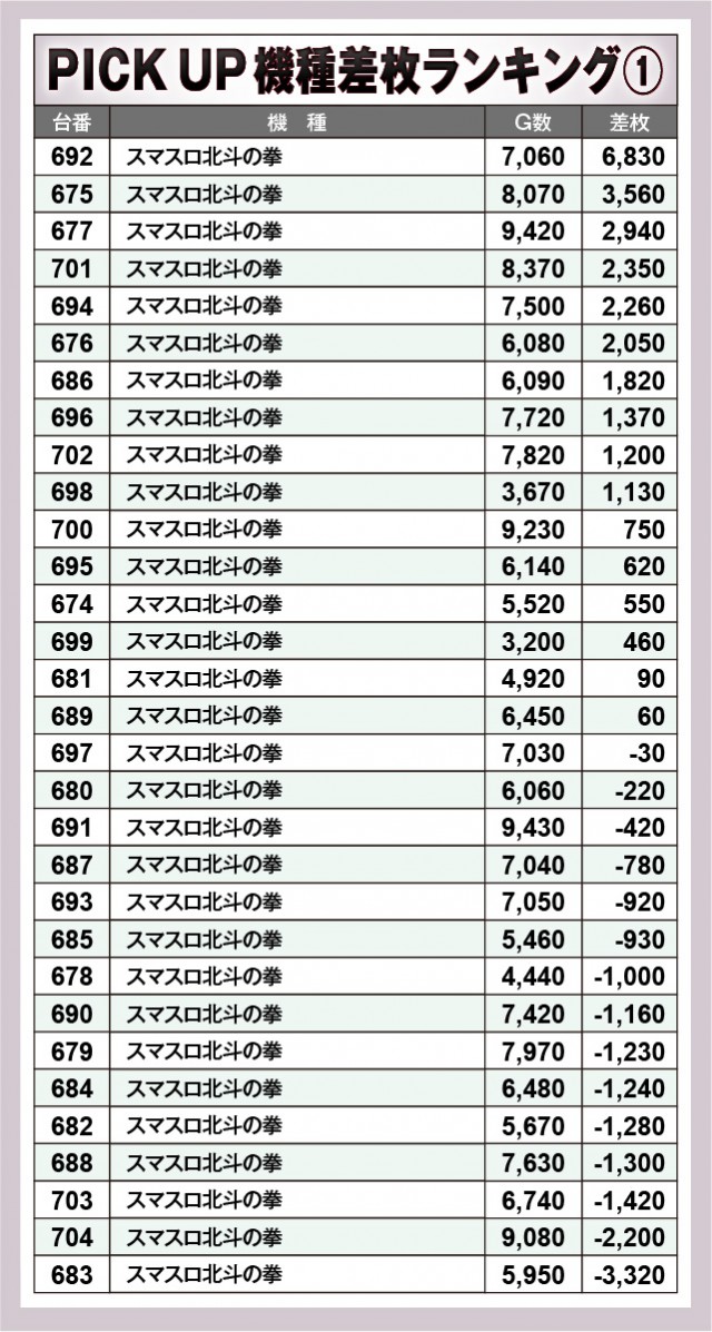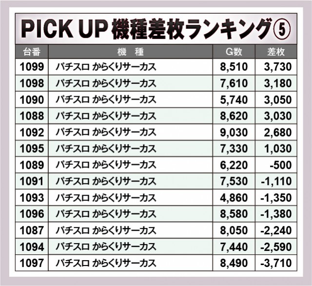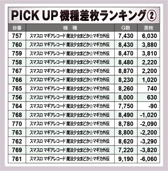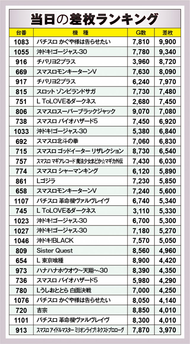 ※差枚数順に掲載しています。