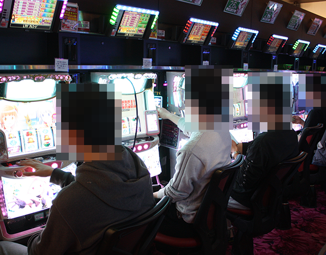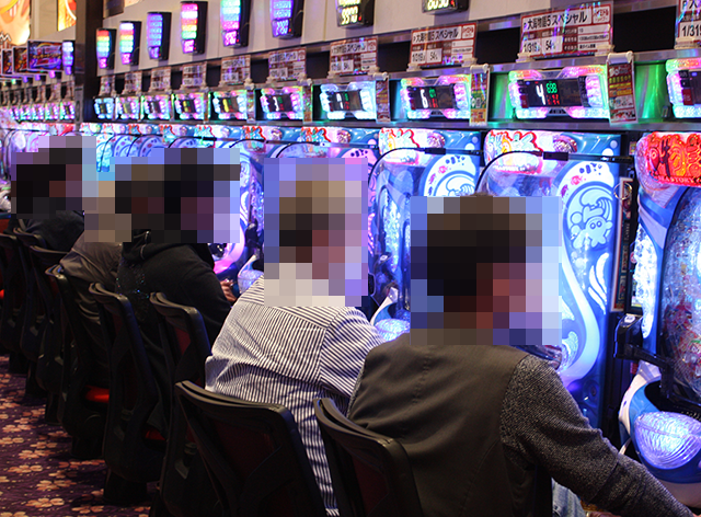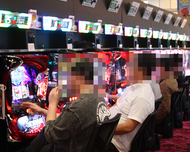 プレイヤーたちが2箱以上や1箱以上の持ち玉を使い、楽しそうに遊技をおこなっていた。