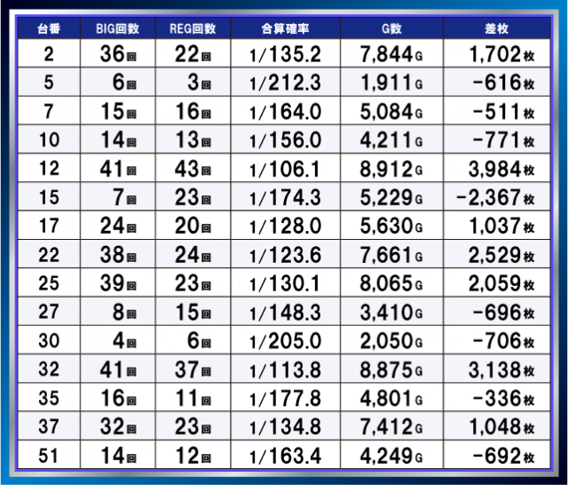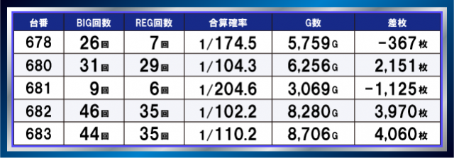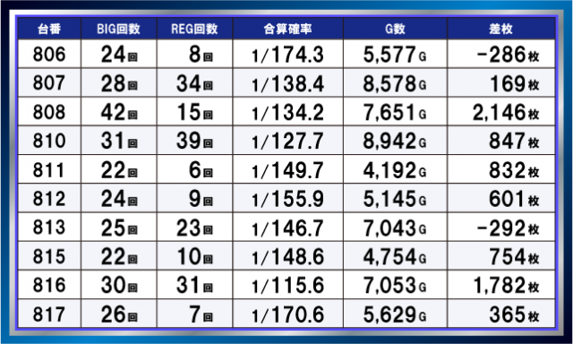 特に『ゴーゴージャグラー3』では、合成確率・通常ゲーム数ともに高水準の台が複数確認できた。