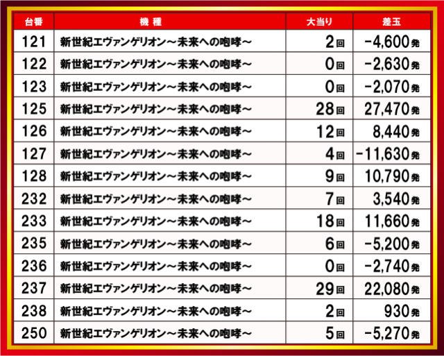 また、『新世紀エヴァンゲリオン〜未来への咆哮〜』では、安定した稼働と出玉感が確認できた。