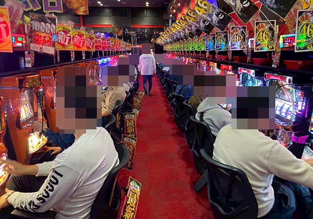 開店直後はパチスロの注目度が高く、とくにスマスロが大人気。