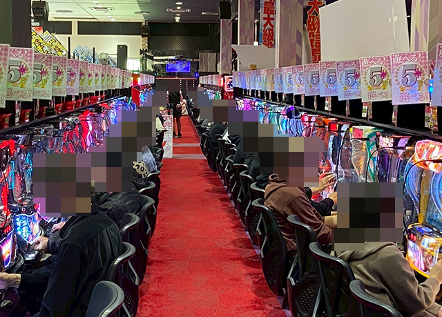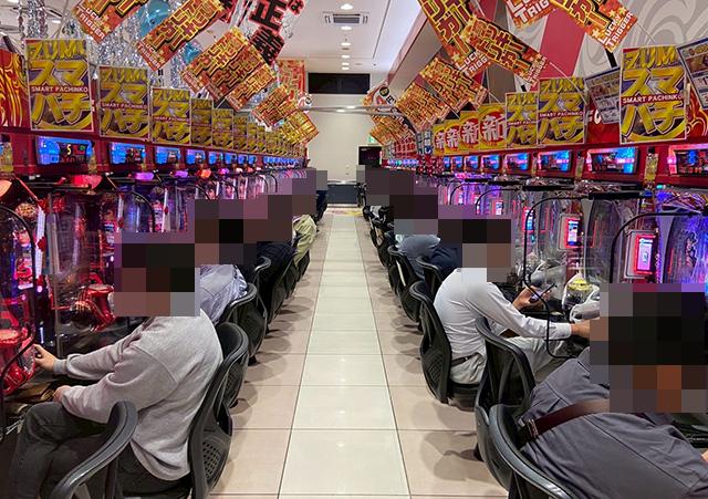 パチンコは、最新機種のスマパチ中心に多彩な機種に遊技を楽しむ姿があった。