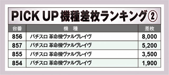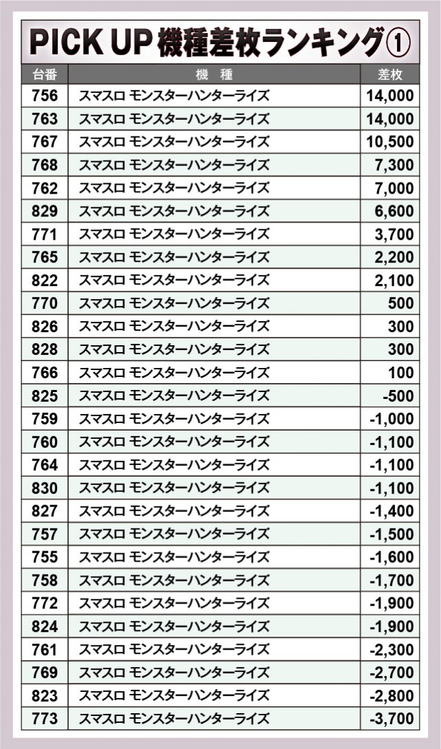 『スマスロ モンスターハンターライズ』『パチスロ からくりサーカス』『スマスロ バイオハザード5』にて合計5台の万枚OVERが飛び出し、さらに万枚未遂台の存在も確認できる。上表をご覧の通り、ほとんどの台が5,000枚OVERの大台突破を果たしており、凄まじい熱気が館内の包み込んでいたのが分かるだろう。後述する優秀機種が多く名を連ねている点も好感を覚える部分で、高いポテンシャルを秘めていたのは確かだ。
