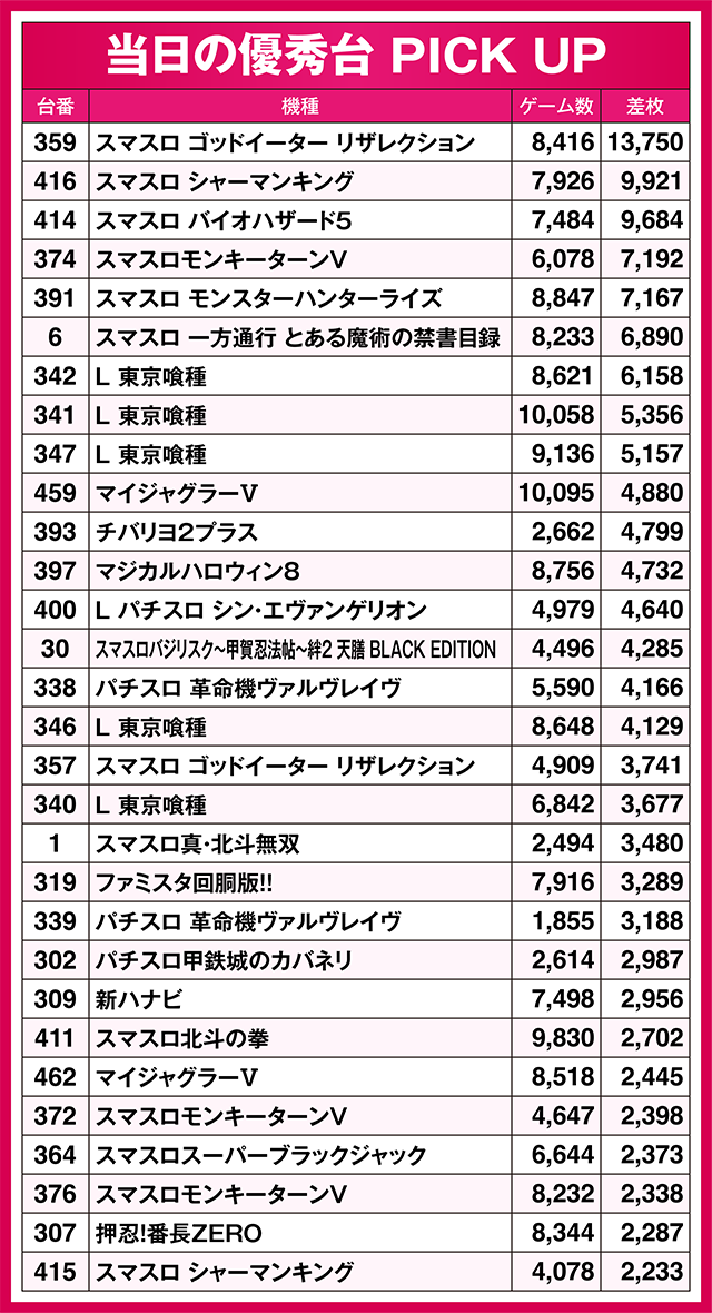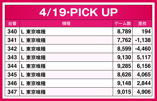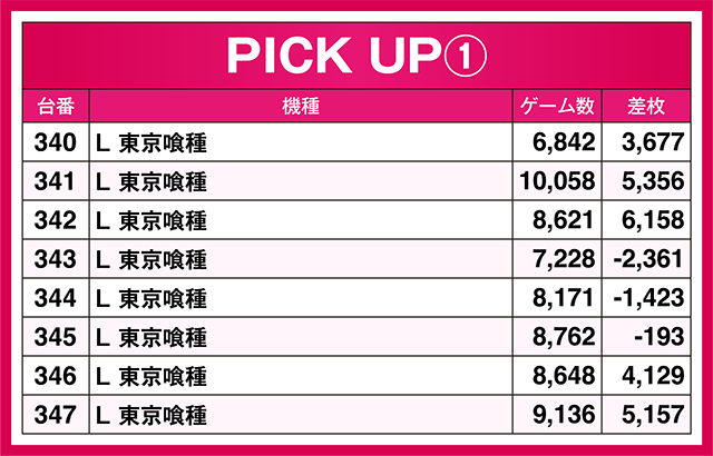 「L 東京喰種」では5台が3,600ptを超え、342番台は6,100ptオーバー!!