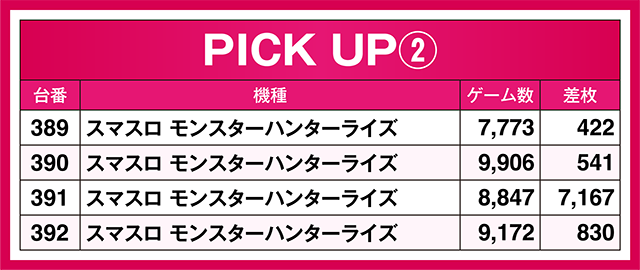 全台がプラスとなった「スマスロ モンスターハンターライズ」は、391番台が7,100pt以上!