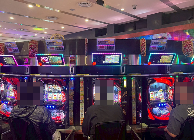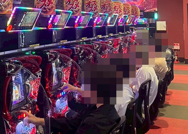 遊技を楽しむプレイヤーがズラリと並び、早い時間帯からにぎわっていた。
