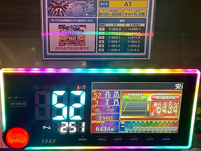 6,000ptを超えている台は、最新機種の「Lパチスロ 機動戦士ガンダムSEED」でも確認。