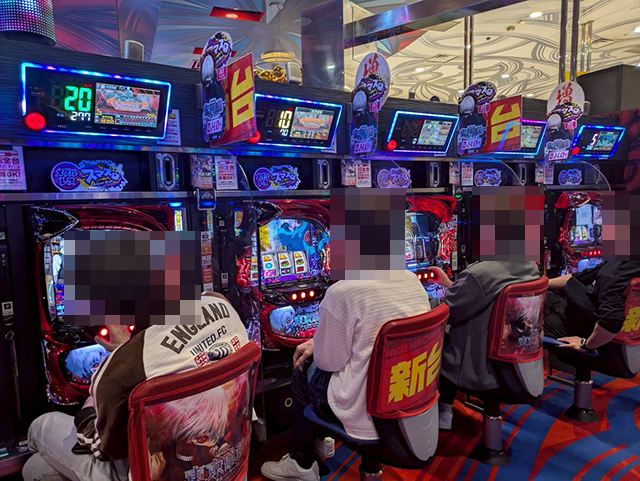 「L 東京喰種」も稼働率が高く、プレイヤーは笑顔で遊技中。