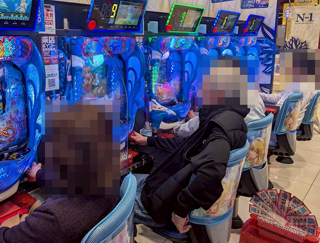 大箱2箱以上の持ち玉で、楽しそうに遊技をおこなっていた。