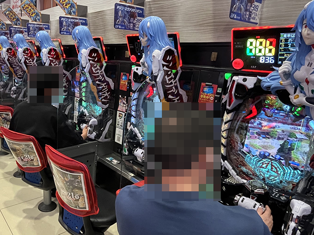 「新世紀エヴァンゲリオン~未来への咆哮~」でも、プレイヤーは晴れやかな表情で遊技中。
