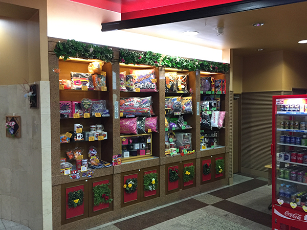 カウンター横にある景品コーナーは多様な品揃え。パチスロのキャラクターグッズなどが豊富に並び、プレイヤーの目を引いていた。さらに漫画本や雑誌が用意されているレストスペースは大きなソファーも完備しているため、のんびりとリラックスできそうだ。