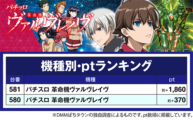 「パチスロ 革命機ヴァルヴレイヴ」の581番台が約+1,800ptオーバー。