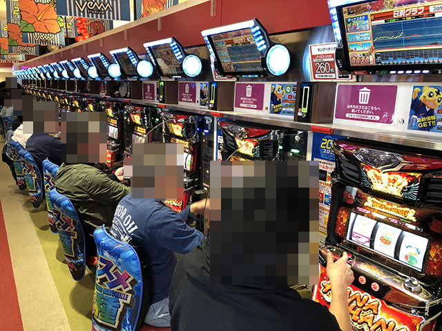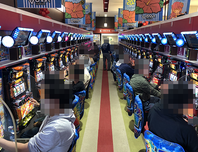 パチンコ・パチスロともに、にぎわっており、プレイヤーたちは思い思いの時間を楽しんでいるようだった。