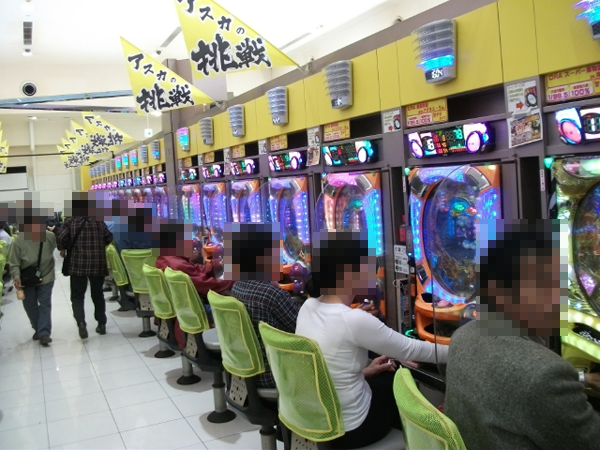 MAXタイプの「CR牙狼 金色になれ」や「CRデビルマン〜覚醒めし悪魔人間〜」といった機種でも、大勢のプレイヤーが遊技をおこなっているのを確認。
