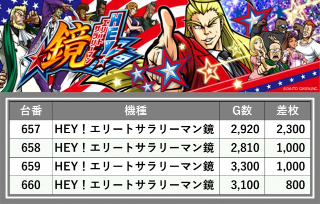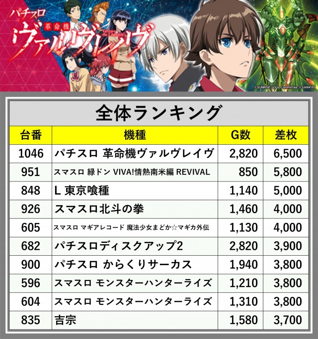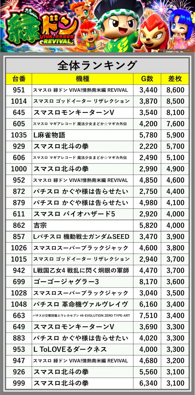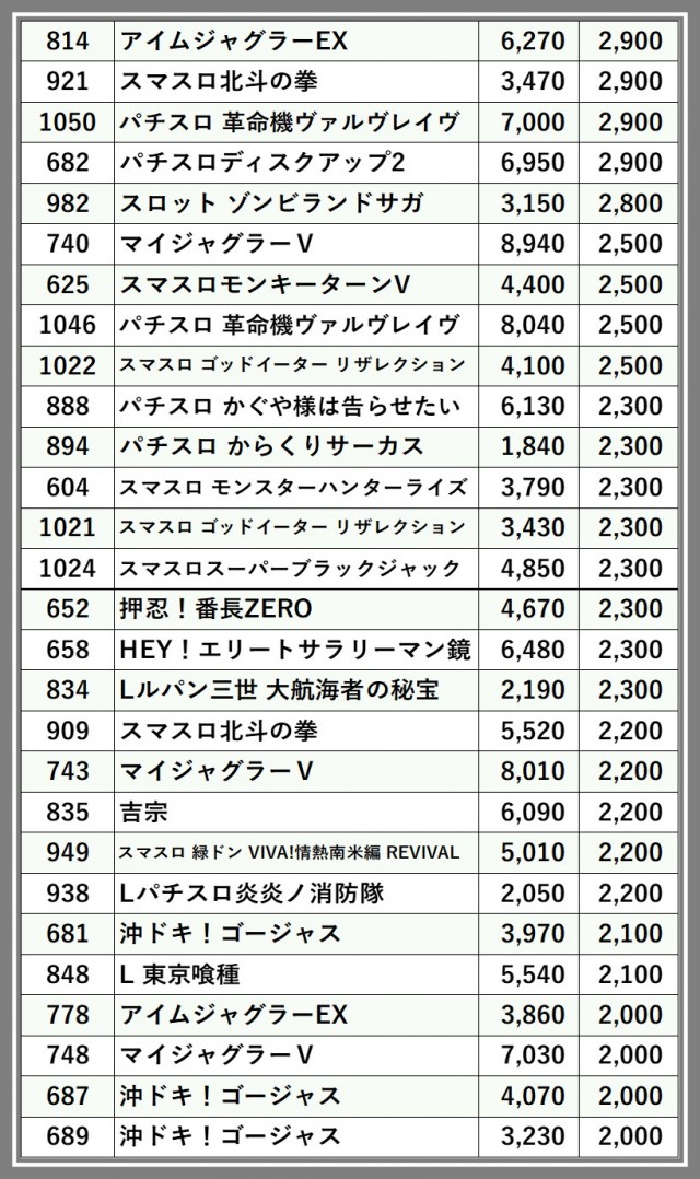 厳選された取材対象機種をはじめ、その他スロット全体から好記録が飛び出した!プレイヤーが楽しんだ1日を下記データにて振り返ってみて欲しい。