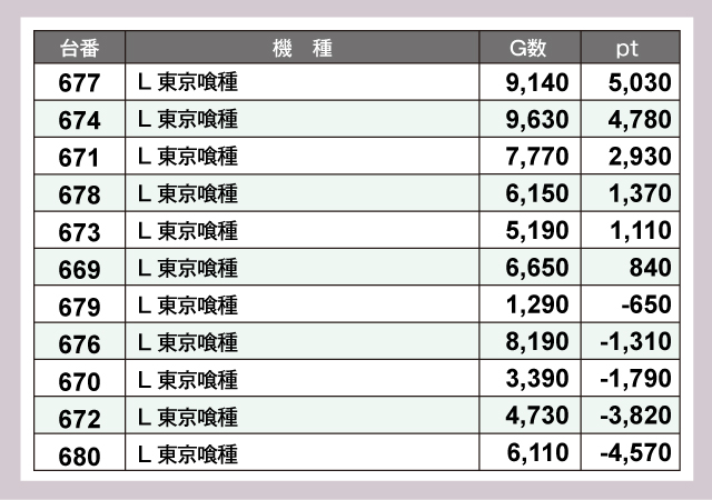 また『L 東京喰種』からも+5,000pt、+4,000ptの優秀台が現れ、プレイヤーは有意義な時間を過ごしていたようだ。