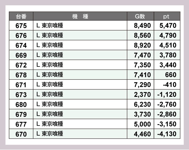 『L 東京喰種』では結果に波はあるものの半数以上がプラスで、+3,000pt超の優秀台が多数誕生していた。