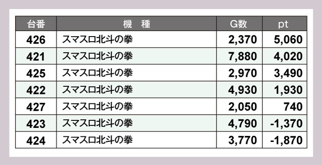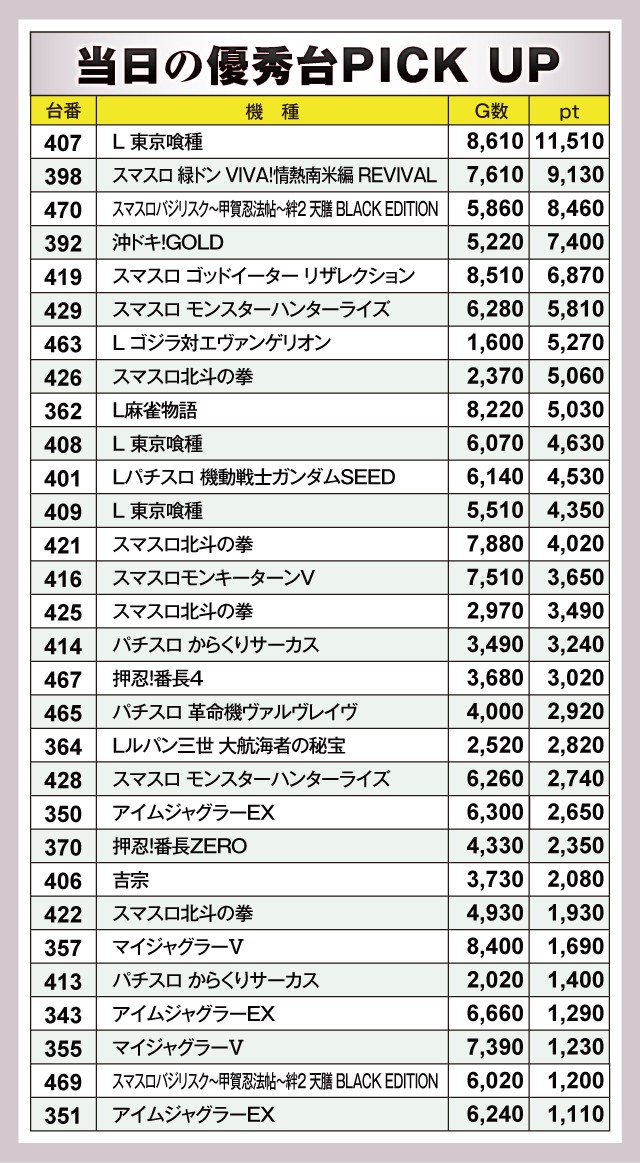 ※差枚pt順に掲載しています。