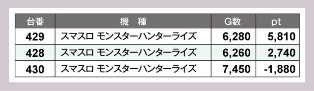 『スマスロ モンスターハンターライズ』や『スマスロ ゴッドイーター リザレクション』、『スマスロ北斗の拳』も大盛り上がりで、各機種+5,000pt超の優秀台が誕生していた。
