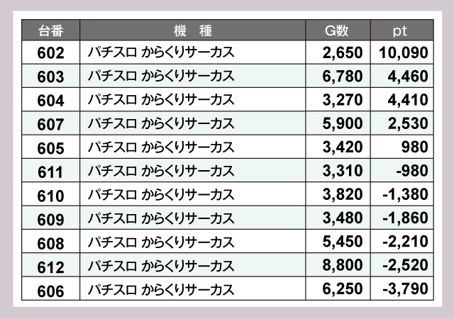 ※差枚pt順に掲載しています。