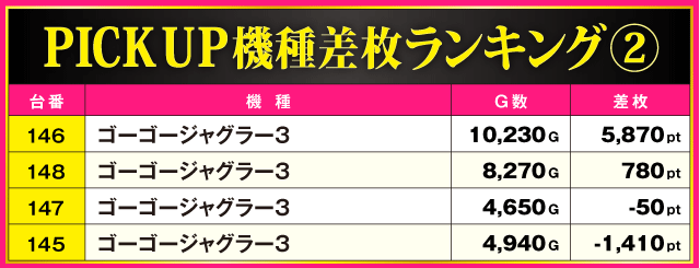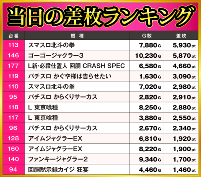 当日の差枚ランキング