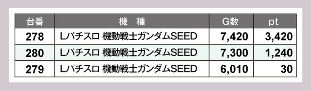 『Lパチスロ 機動戦士ガンダムSEED』は3台すべてがプラスで終了。プレイヤーの満足度は高かったように思う。
