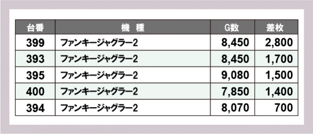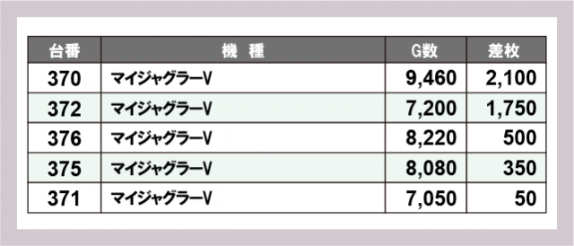 ※差枚数順に掲載しています