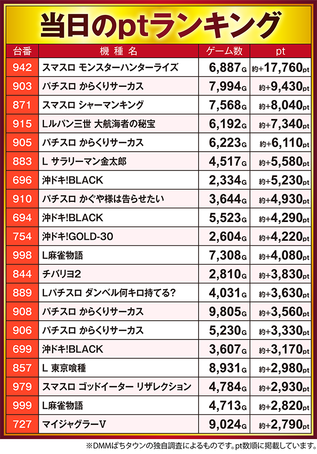 905番台も約+6,100ptを上回るなど、機種全体に活気がありました★