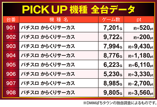 「パチスロ からくりサーカス」では、903番台が約+9,500ptクラスとなりました★