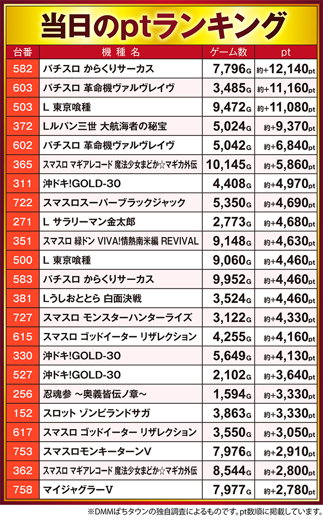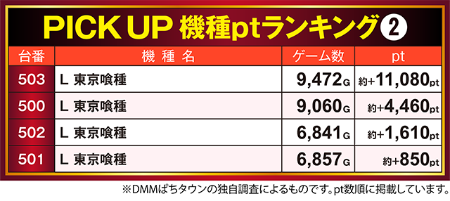 「パチスロ 革命機ヴァルヴレイヴ」の603番台と「L 東京喰種」の503番台も約+11,000pt以上となりました~☆