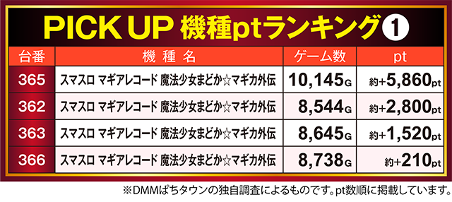「スマスロ マギアレコード 魔法少女まどか☆マギカ外伝」では、365番台が約+5,860ptを記録しました(^ω^)/
